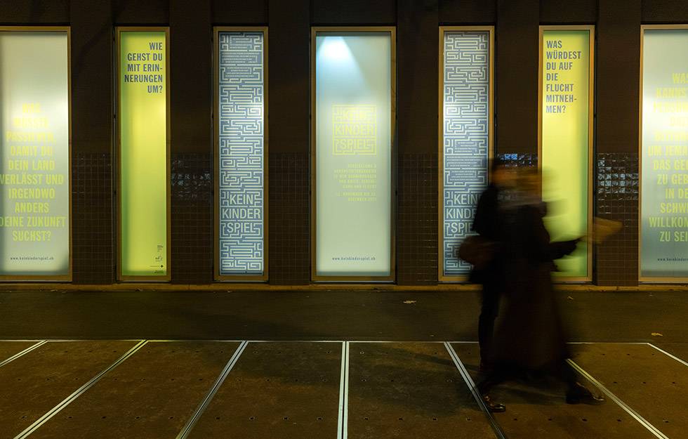 «Kein Kinderspiel» lautet der treffende Titel einer eindrücklichen multimediale Ausstellung zu den Auswirkungen von Krieg, Verfolgung und Flucht auf die erste und zweite Generation von Flüchtlingen in der Schweiz, die als Wanderausstellung in Bern, Chur, Aarau und Zürich gezeigt wird. Ineinander verwobene Porträts von Geflüchteten unterschiedlichster Herkunft halten in Fotografie, Text, Film und Video das oft Unaussprechliche des Traumas in der Generationenabfolge facettenreich fest. Die Porträts werden mit Hintergrundinformationen ergänzt, die vielen Gesprächen und vier Podien mit Fachleuten und Betroffenen entnommen sind. Die Ausstellung spricht besonders Jugendliche an.