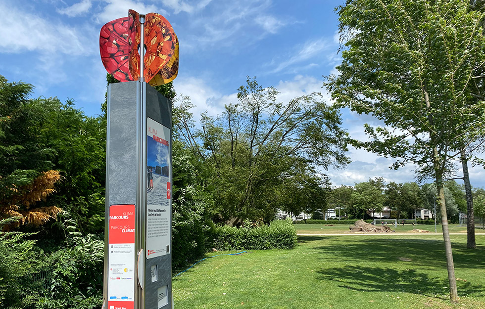 Der Klimaparcours auf dem Bieler Strandboden zeigt anschaulich, wie die Klimaerwärmung unsere Region beeinflusst. Die Stelen informieren über Auswirkungen auf den Alltag und geben praktische Tipps für nachhaltiges Handeln.