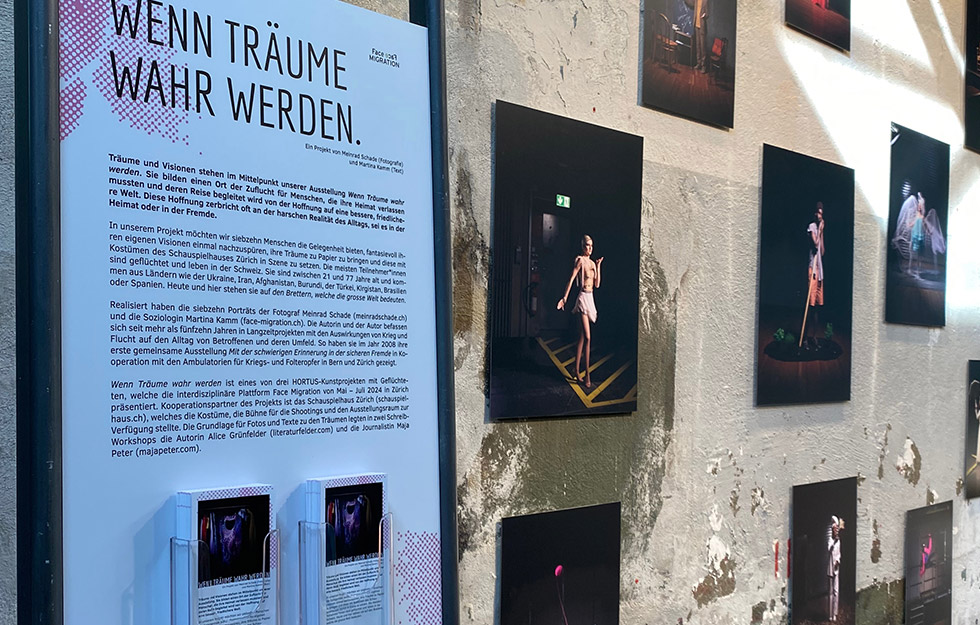 Geflüchtete Menschen aus verschiedenen Ländern wie der Ukraine, dem Iran oder Afghanistan brachten in diesem Projekt ihre persönlichen Träume zum Ausdruck. Mit Kostümen des Schauspielhauses Zürich inszenierten sie diese kreativ, wodurch eindrucksvolle Porträts voller Hoffnung, Stärke und Fantasie entstanden.